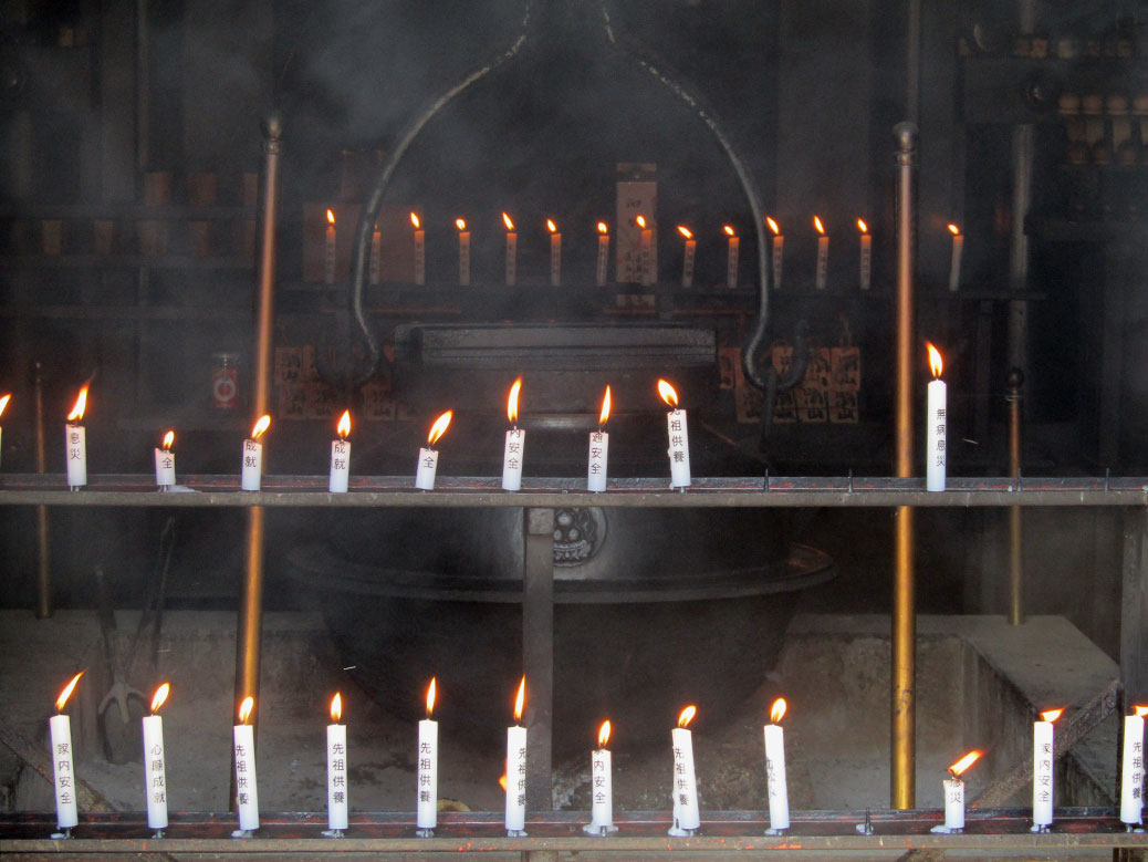 The temple’s monks go through an hour-long ceremony, building a towering bonfire fueled by thousands of wooden stakes—offerings left throughout the year by worshippers. They smooth the coals several times over with long bamboo poles as the flames rise and fall. Purifying salt is thrown over the flames and pine branches laid at either end of the inferno. There’s chanting, a conch-shell horn and a lot of theatrics.