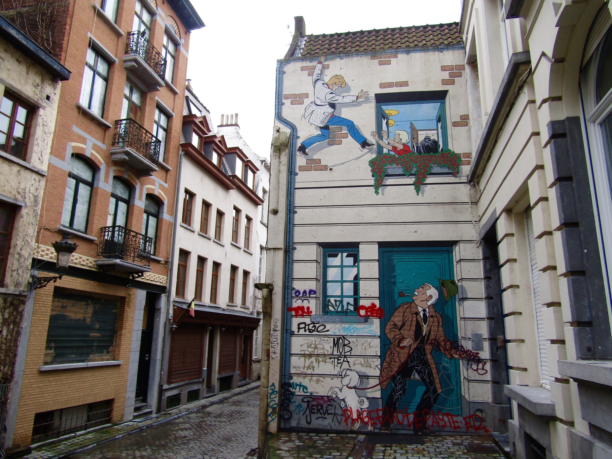 Started in 1991 as a colorful way to decorate the mono color streets of the city, more than 50 murals can be found throughout the city. We followed the Comic Book Trail from Grand Place to the south end of the city. It’s a bit like a treasure hunt as some are tucked away down side streets while others jump out at you.