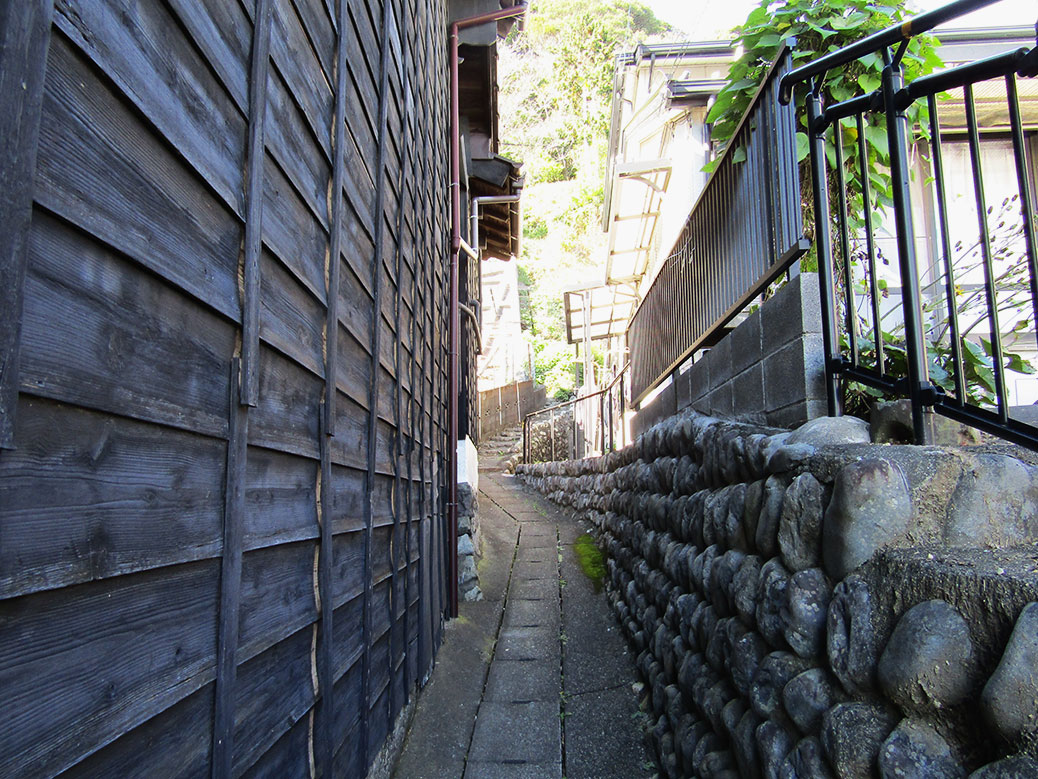A Japanese couple had been about 100 feet behind us since Okitsu Station. We compared maps and notes, trying to find our way to the trail. Eventually, we took the road less traveled, heading up some stone steps along a narrow cement retaining wall where we found a set of stairs. Our new friends waited at the bottom for our signal… YES! We found the trail!