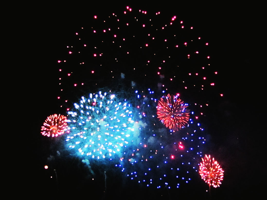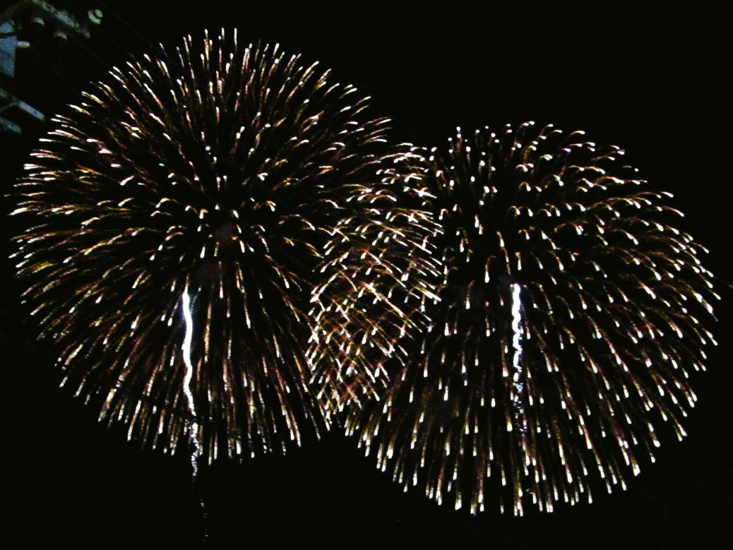Before, during and after the parade, the sky lights up with hundreds of fireworks. Hanabi (firework viewing) is usually a summertime event, so the show in Chichibu is unique in December. It also gave us an opportunity to try out the “Fireworks” setting on our camera, capturing some fun shots.