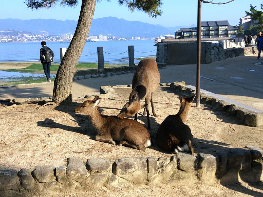 While the torii and the shrines are the main draw, Miyajima might be just as famous for its wild deer. After living with generations of tourists, the deer are mostly docile and don’t really care about the thousands of people walking through their home. However, when feeding time comes, they turn into quite a nuisance, digging into bags or just swiping things out of people’s hands. As we watched the sunset, a deer with a cataract came up and snagged our map of the island out of our bag. He chewed it and swallowed it down, his creepy cloudy-white eye staring at us the whole time.