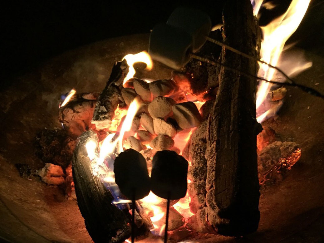 Making s’mores for the first time!