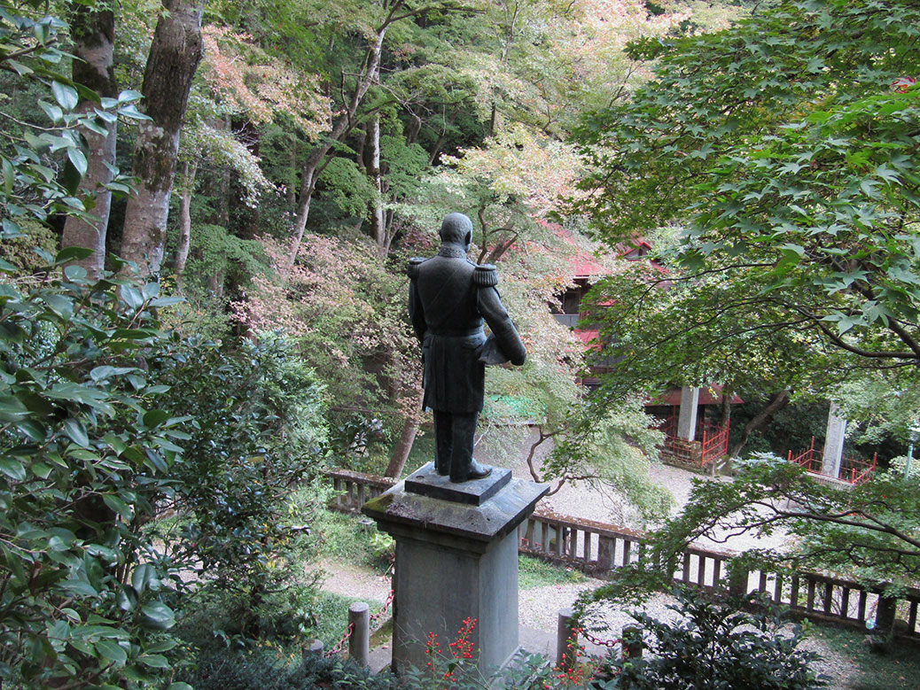After ringing the bell a couple times, we passed through the low-ceiling tunnel under the train tracks and followed the path to Togo Park. The park is named for Heihachirō Tōgō, an admiral in the Imperial Japanese Navy during the 1800s who grew up in the area. The steep-hilled park is popular for viewing the changing autumn leaves.