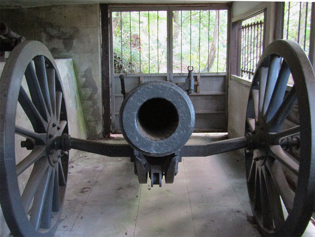 At the top, reached by climbing nearly 400 steps, we were rewarded by an outdoor “museum” to the Russo-Japanese War. A piece of artillery-shelled deck from the battleship Mikasa and a Russian-made cannon with artillery shells are among the items on public display. Higher up, a small bamboo grove surrounds Chichibu Mitake Shrine. The shrine is the only one in Hannō that has a Shinto priest living on site.