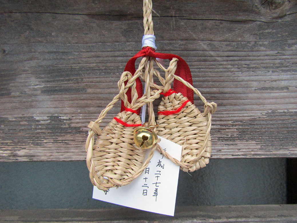 Neno-Gongen is all about extremes. A pair of giant Kongōrikishi statues wait at the gate in their permanent intimidating poses. Inside, an oversized pair of straw sandals hang near the main temple with two more metal versions sitting nearby. Opposite the giant sandals, miniature sandals serve as ema (prayer offerings) left by worshippers. Down the hill, a pair of giant hands rest in a traditional Buddhist mudra position.