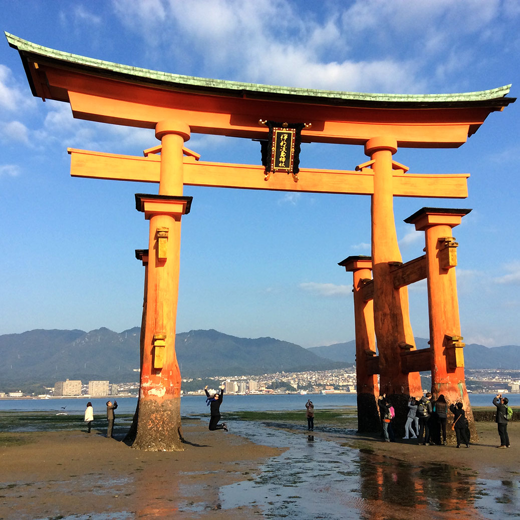 We arrived early enough to be able to spend an hour or so walking around the torii with only a thin crowd joining us. At low tide, you can walk all the way through the gate, the seabed just firm enough from the dried mud and seaweed. We snapped photos from every angle imaginable. We offered to take photos for strangers who offered the same in kind. A quiet and peaceful morning in a tranquil place.