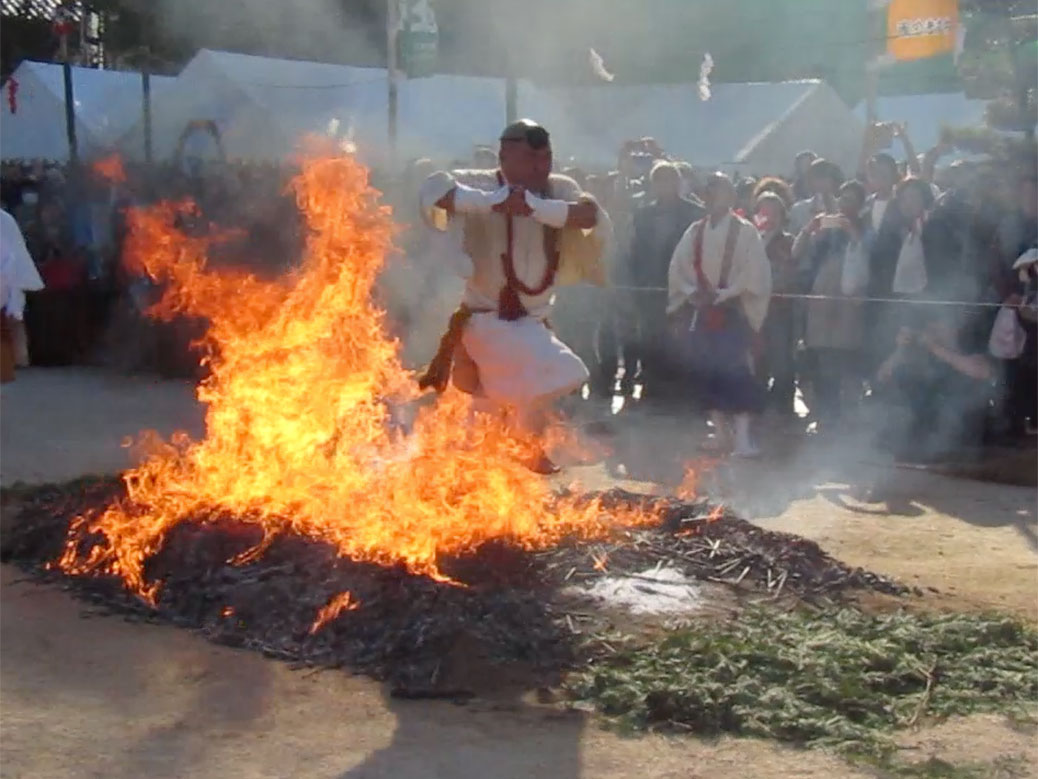 The temple’s monks go through an hour-long ceremony, building a towering bonfire fueled by thousands of wooden stakes—offerings left throughout the year by worshippers. They smooth the coals several times over with long bamboo poles as the flames rise and fall. Purifying salt is thrown over the flames and pine branches laid at either end of the inferno. There’s chanting, a conch-shell horn and a lot of theatrics.
