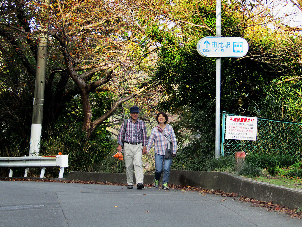 We arrived at the Sakura Ebi (Cherry Shrimp) Street gate in front of Yui Station exactly five hours after our first glimpse of Fuji at breakfast. Walking in the footprints of history is exhausting work, the welcome sight of the station just as satisfying at it might have been in the 1600s.