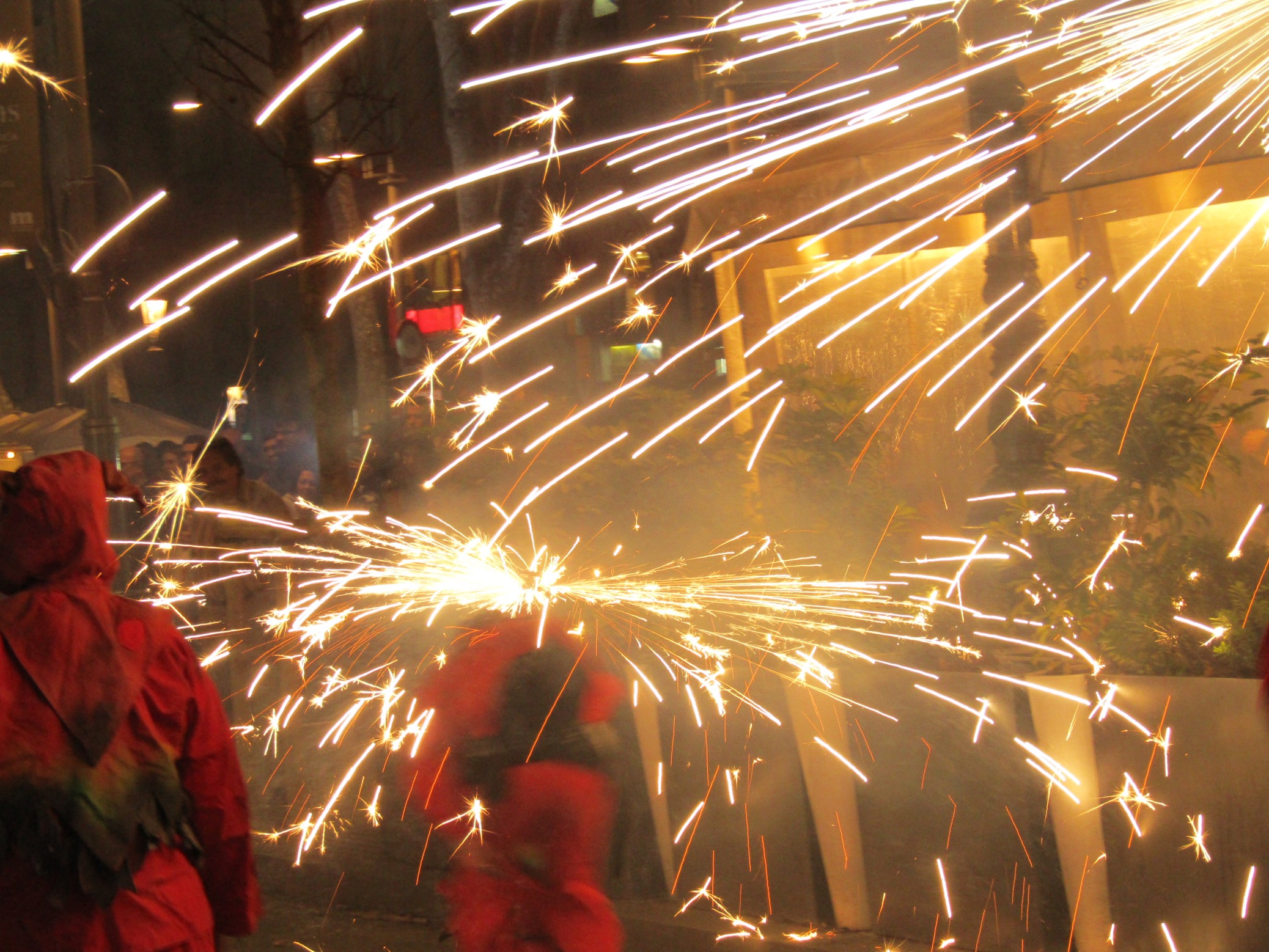Kids of all ages, dressed in devil costumes and trailed by large bands of drummers, ran down the side of La Ramblas carrying sticks with sparking fireworks attached to the top. When lit by a “responsible” adult, the firework would spin atop the stick, sending a shower of sparks flying into the crowd.