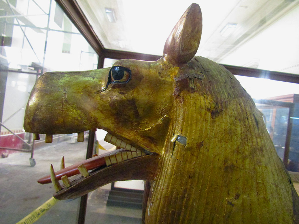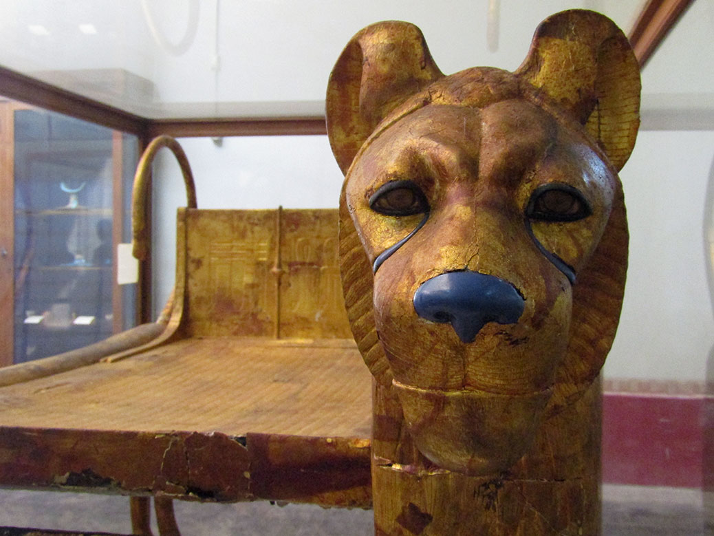 The second floor houses the pieces of the famous kings and more solid gold bling. Namely, all of the 5,000 things that a boy king Tutankhamun could ever want for the afterlife. We saw his gold ceremonial chair, three funerary beds (in case he wanted to bounce from bed to bed, I guess) and four shrine gold boxes that held his sarcophagus and death mask.